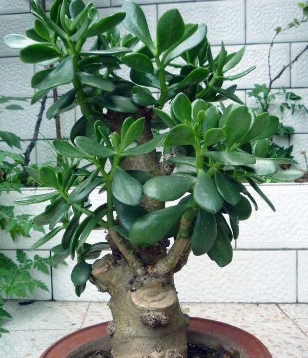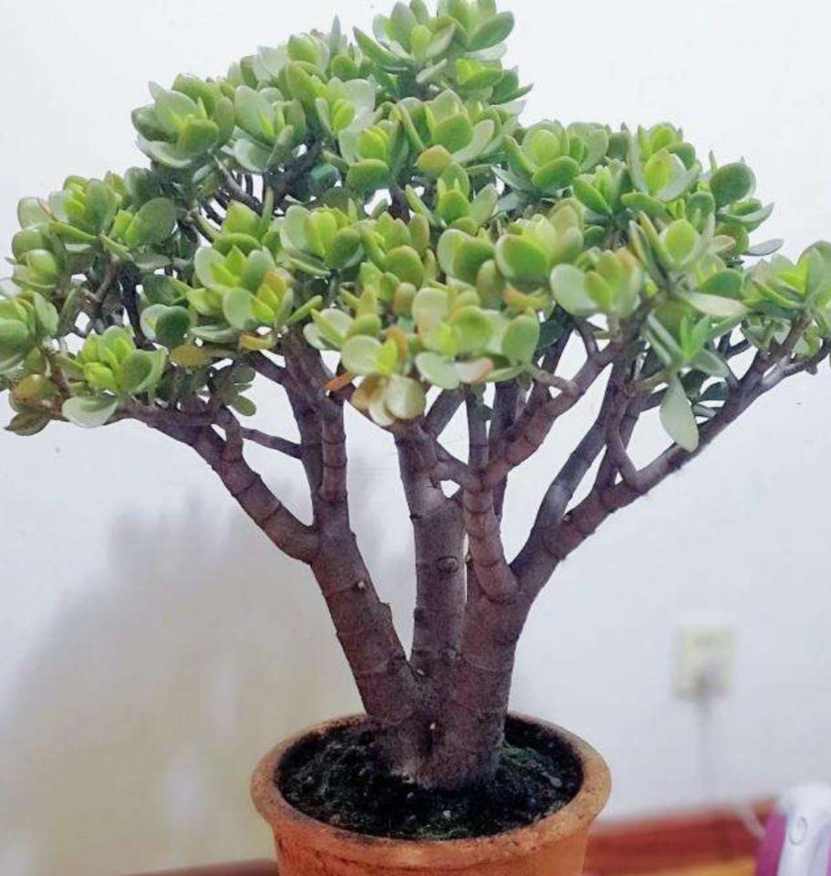 玉树:景天科青锁龙属多肉植物,多年生常绿肉质灌木植物。原产于非洲南部,叶片和茎干都是肉质,叶片不算厚但是表面光滑,绿色,叶缘在光照充足时会微微泛红。玉树生长速度比较快,易分枝,茎干易木质化。喜阳光充足,干燥,温暖的环境,不耐寒。忌潮湿积水,适宜用疏松透气排水性好的沙质土壤。