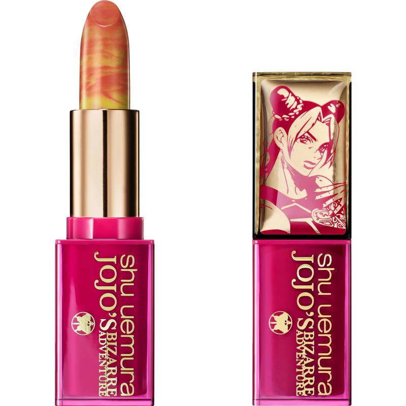 shu uemura植村秀X JOJO的奇妙冒险限量联名彩妆水光润色唇膏-奇妙冒险,NT1,250 膏体将JOJO漫画中经典迷幻纹路完美复刻,妆效更以独特裸嫩杏橘色调调製,一抹上唇润泽,气质与气色瞬间提升。