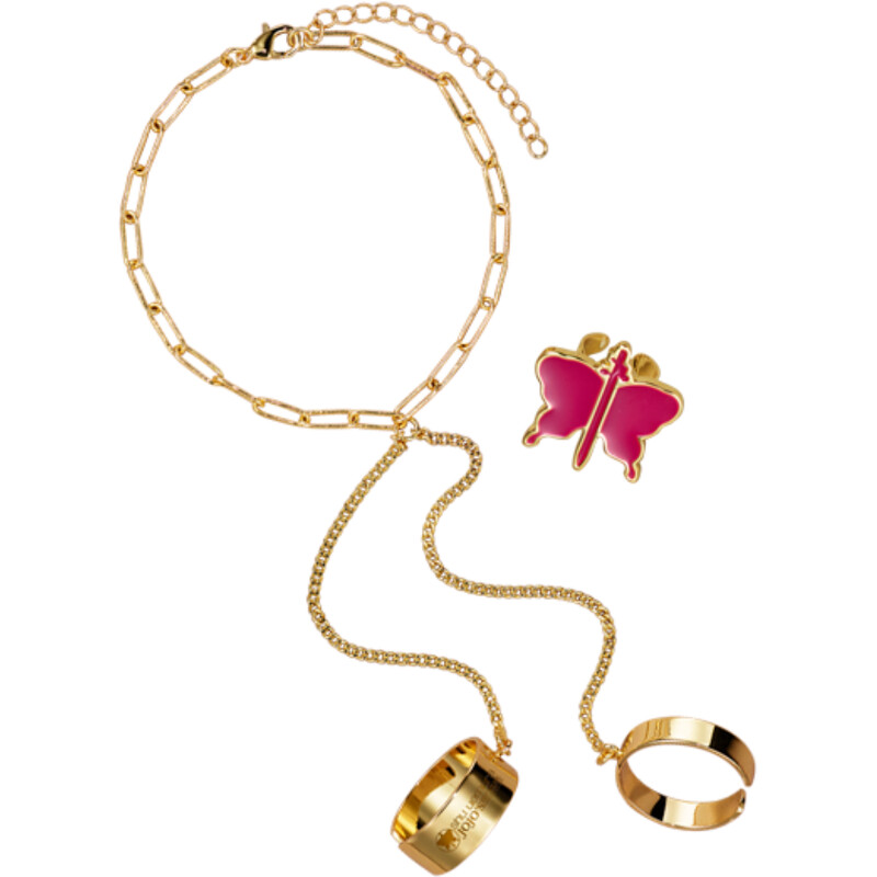 shu uemura植村秀X JOJO的奇妙冒险限量联名彩妆周边-JOJO造型耳夹+戒指手环组 百货通路限定。单笔消费满NT4,500,须含任一款JOJO联名商品,即可获得超酷的蝴蝶造型耳夹+戒指手环组(与 JOJO联名手拿包择一赠送、各柜数量有限)。