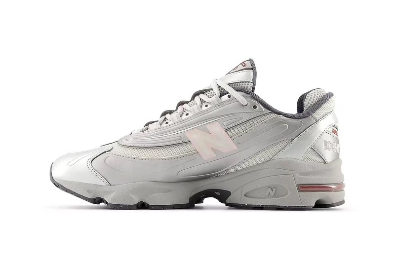 千系型号总是 New Balance 的话题鞋款,诞生于 1999 年的 New Balance 1000,以其稜角分明的结构与强烈跑鞋语彙成为当代鞋头的心头好。本季新配色以亮泽金属银覆层主导,呼应时下流行的 Y2K 科技美学;柔粉基底则增添细腻暖意。整体设计以材质对比为核心,在未来感与柔美气质间取得平衡。