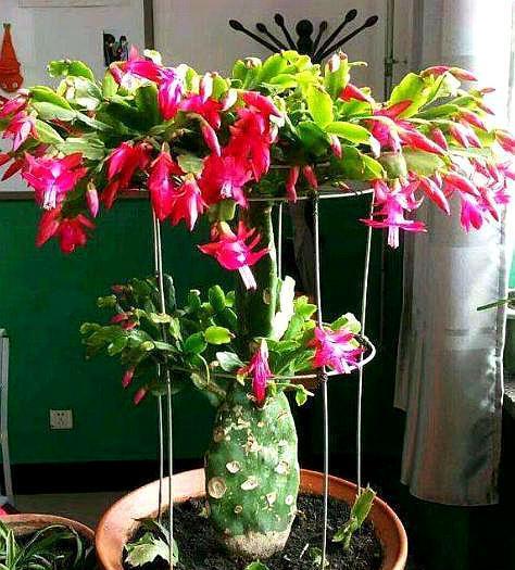 将玉树的主干去顶并切成一字形状,之后将蟹爪兰的枝条进行嫁接。捆绑塑料袋并套袋保湿。保持高温环境。